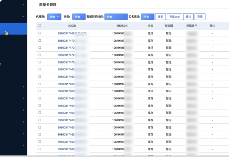 分配、卡迁移、卡状态管理、卡/设备在线采购